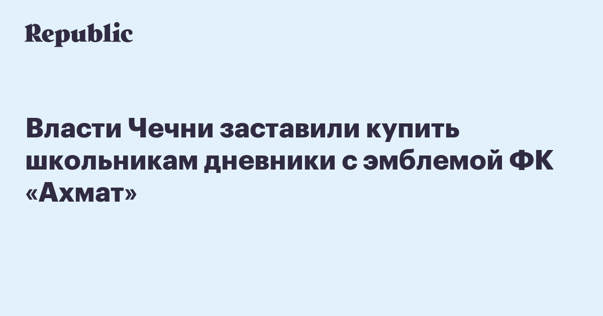 Школы Чечни обязали закупить дневники с эмблемой футбольного клуба «Ахмат» (бывший «Терек»). Об этом сообщает «Кавказский узел».
