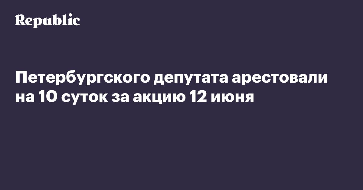 Петербургского депутата арестовали на 10 суток за акцию 12 июня