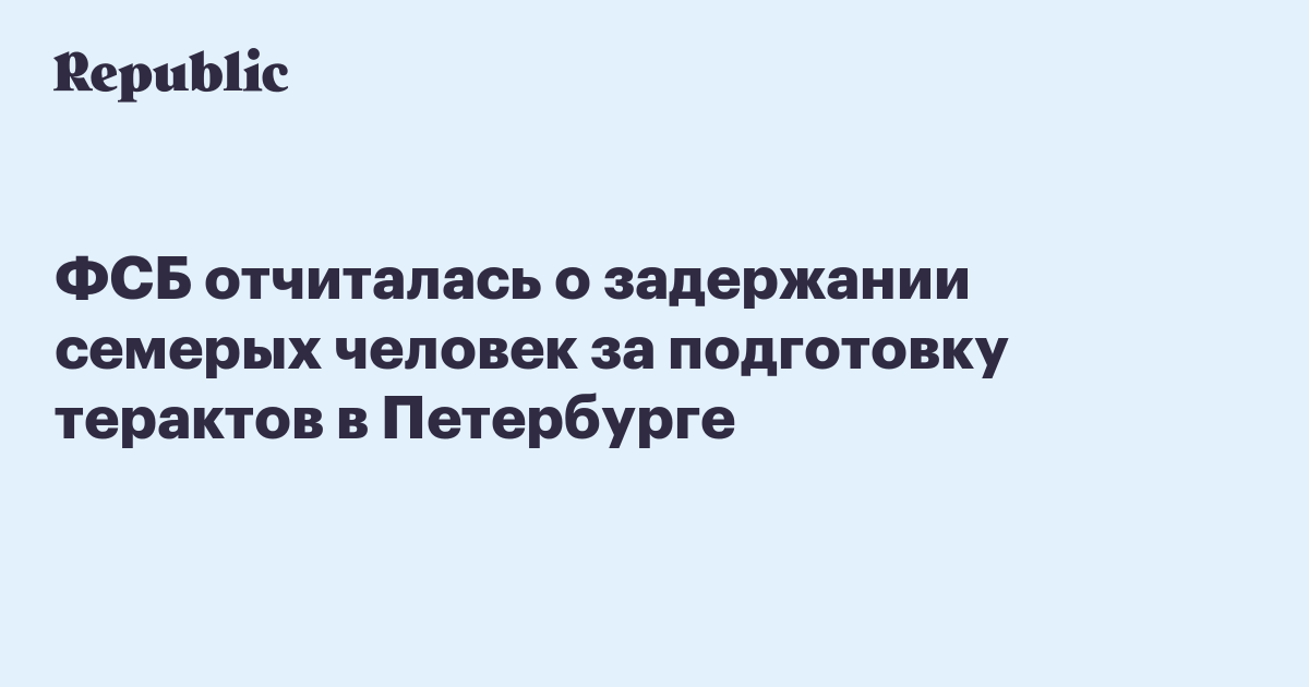 ФСБ отчиталась о задержании семерых человек за подготовку терактов в Петербурге