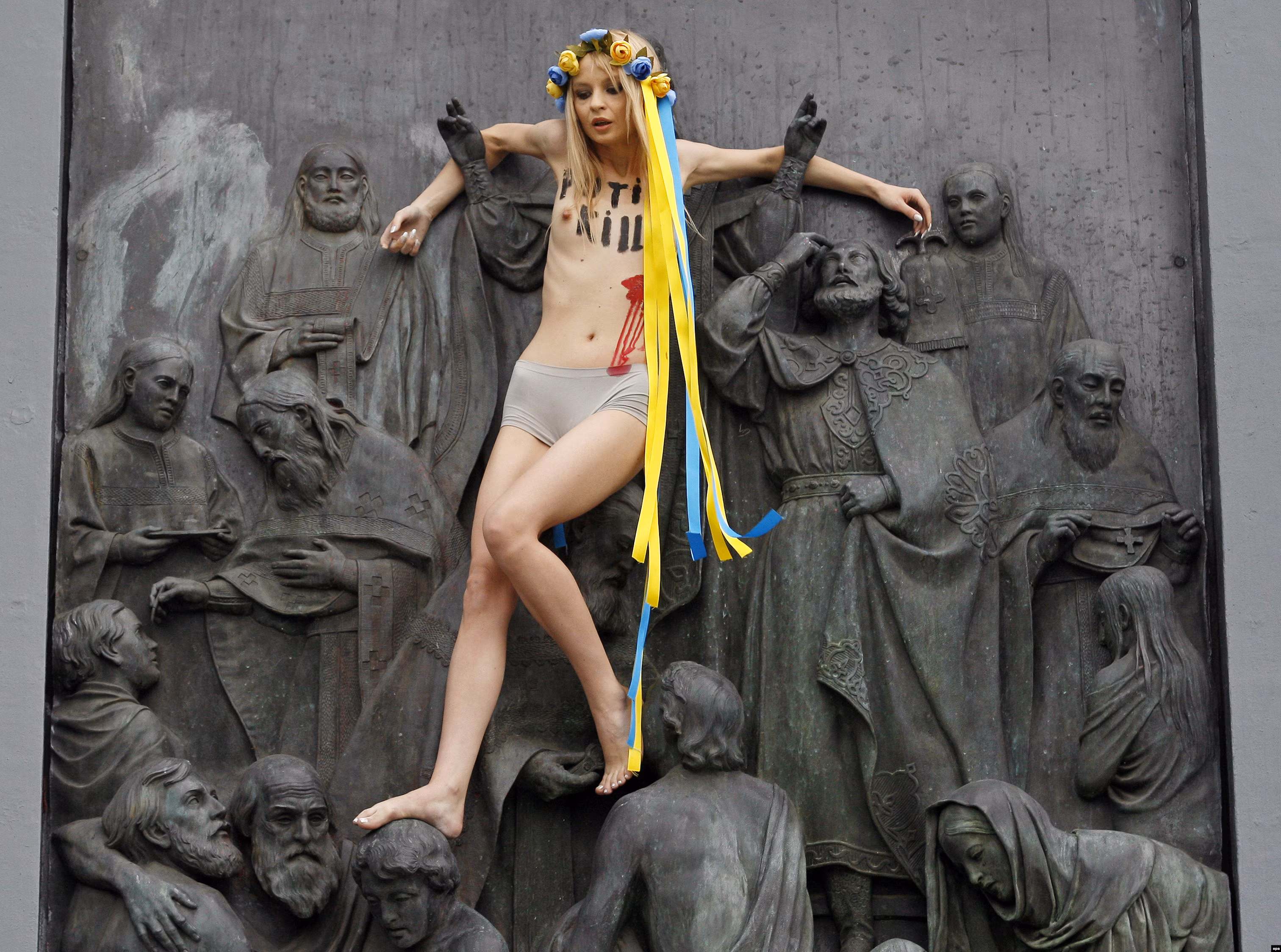 FEMEN уже устраивали в Киеве акции в этот день – правда, было это еще при президенте Викторе Януковиче. Не новы для группы и протесты против РПЦ: в 2012 году активистка движения Анна Жданова с криками "Изыди вон!" выбежала из группы журналистов, встречавших патриарха Кирилла в аэропорту Борисполь, скинула одежду и обнажила надпись “Kill Kirill” ("Убей Кирилла") на своей спине.