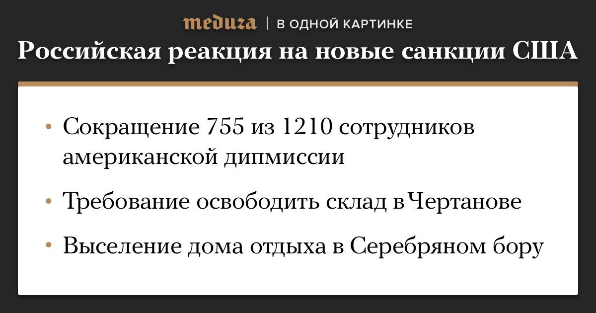 Дата30.07.2017АвторСкрытИсточникМедузаСохранённая копияInternet ArchiveOriginal MaterialShow translationКак Россия отвечает на санкции. В одной картинкеСанкции в отношении России одобрили Сенат и Конгресс, но еще не подписал президент США Дональд Трамп. Фото в анонсе: Евгения Новоженина / Sputnik / Scanpix / LETA