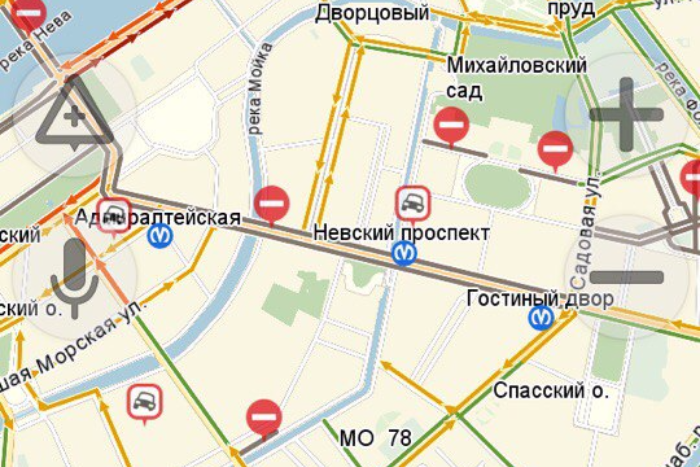 Утром 30 июля «Яндекс.Навигатор» показывает, что Невский проспект закрыт для движения. «Водитель Петербурга» со ссылкой на очевидцев и данные веб-камер пишет, что проезд открыт.