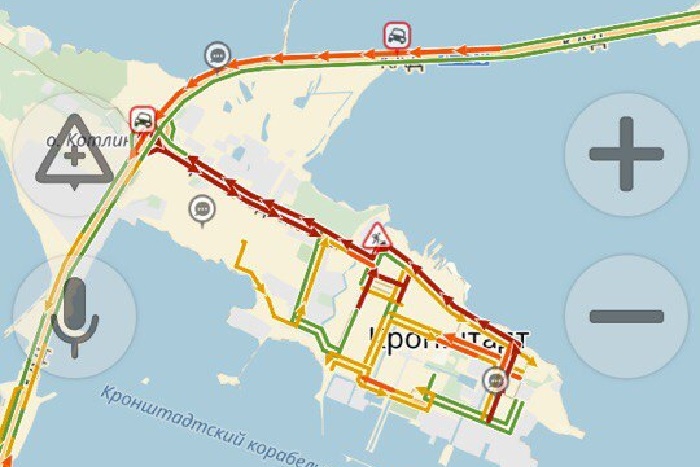 Утром водители стояли в пробке на КАД в сторону Кронштадта. Из-за наплыва посетителей город закрывали на въезд.