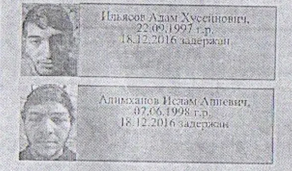 Так, были задержаны фигурирующие в расстрельном списке «Новой газеты» Адам Ильясов и Ислам Алимханов. В фототаблице указано, что они были задержаны 18 декабря 2016 года. 19 декабря был задержан Ризван Маликов. Альви Хакимов, Сайхан Эскарбиев были сняты с автобуса и задержаны 21 декабря 2016 года. Зелимхан Джабаев был задержан 21 декабря у себя дома. Адам Абубакаров был задержан 22 декабря.