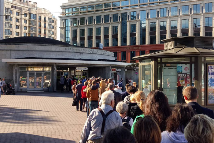 На прошлой неделе на четырех станциях — «Спасской», «Звенигородской», «Электросиле» и «Крестовском острове» — ввели тотальный досмотр пассажиров. Из-за этого на входах в вестибюли были огромные очереди.