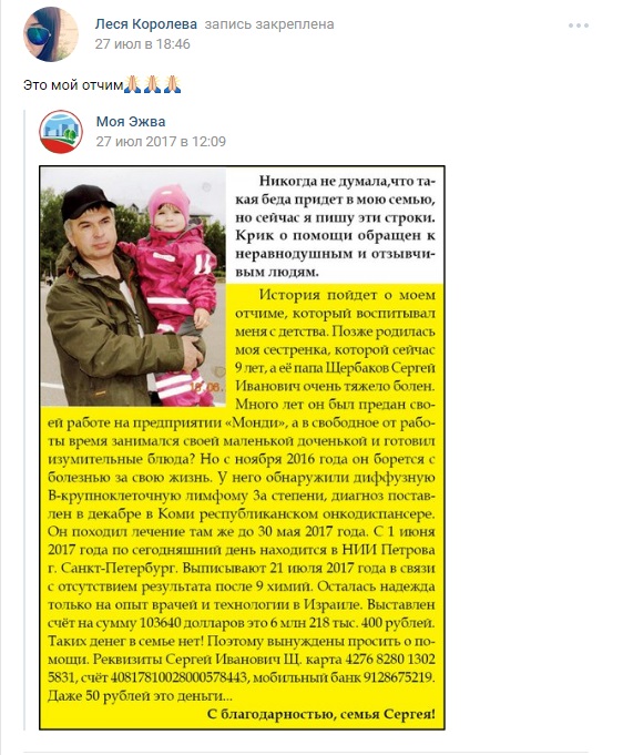 Доверяй, но проверяй. Или как в Эжве просят на лечение