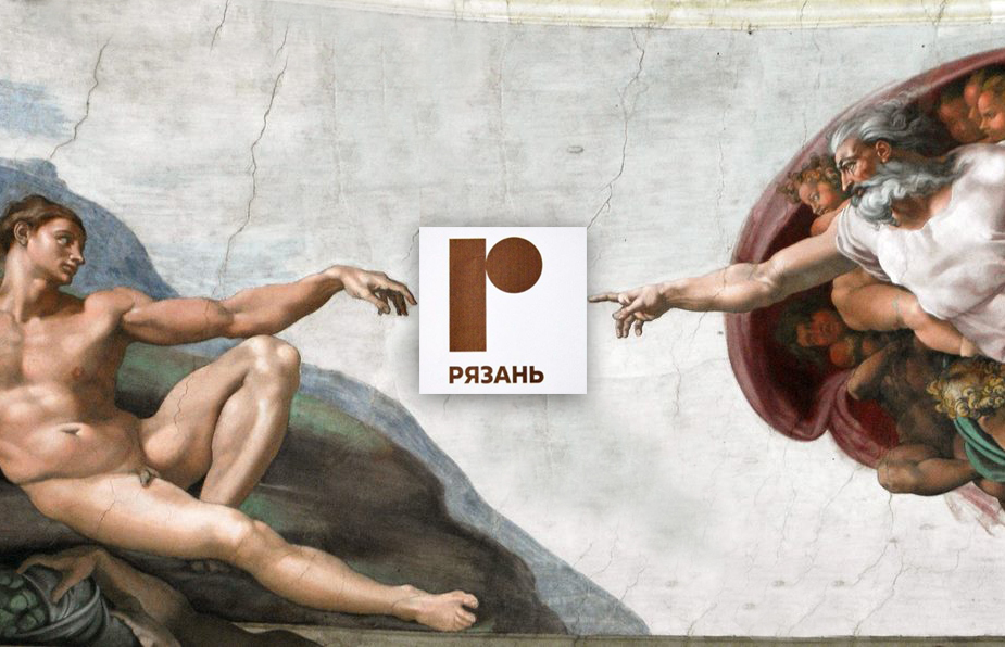 «Много сказано по поводу нового бренда Рязани. Я думаю, что голосование в группе Новости Рязани „ВКонтакте“ (против этого бренда там проголосовало более 3 000 человек) говорит само за себя. Рязанцы этот бред не приняли. Я все понимаю. Воркшопы. Смузи. Коворкинги. Диджитал-маркетинг и прочая хипстота. В этом бренде главное именно это, а не то, что хотелось бы увидеть рядовым рязанцам, к коим я отношусь. Но более всего меня смутило, что во время вчерашней презентации нового бренда Рязани кто-то из команды разработчиков сравнил свое новоявленное рязанское бревно с фреской из Сикстинской капеллы „Сотворение Адама“. Там что-то было сказано про „внутреннее напряжение“, про „тягу объектов“, про „касасание“ и т. п. Мол, это было нарисовано по тому же принципу. Знаете, что мне хочется сказать... Хочется сказать матом. Но не буду. Потому что смотрю на „Сотворение Адама“ и хочется думать не о вашем творчестве. Ребят, вы нас совсем за идиотов держите? Вы как вообще свое бревно с золотым фондом мирового искусства рядом поставить умудрились? Это была такая нелепая попытка придать авторитета своему „творению“? На фреске великого итальянца на тысячелетие вперед заложено куча разных подтекстов. Сама по себе эта работа — источник кучи исследований. Я не говорю об эстетической оценке и религиозном значении. Там изображено творение человека! Если хотите, творение всего того, что вы знаете об этом мире. Вы только вдумайтесь в то, что там нарисовано! Великий мастер знал, что он делает, и в этой фреске нет ни одного мазка „просто так“. А что показали вы? Есть ли в вашем бревне хоть какой-то подтекст? Вы нам пытаетесь соврать, что Микеланджело вас якобы вдохновил на создание палочки с кружочком? Вы серьезно? Это мое личное мнение. Не претендую ни на что, как говорится, и придумывать новый логотип Рязани не собираюсь. А для того, чтобы вы поняли о чем я написал выше, поставлю-ка я рядышком „Сотворение Адама“ и „Новый рязанский бренд“. Комментарии, думаю, излишни. Вы сами все понимаете».