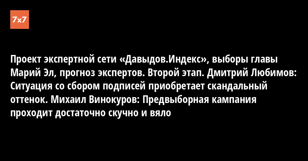 Проект экспертной сети «Давыдов.Индекс», выборы главы Марий Эл, прогноз экспертов. Второй этап. Дмитрий Любимов: Ситуация со сбором подписей приобретает скандальный оттенок. Михаил Винокуров: Предвыборная кампания проходит достаточно скучно и вяло