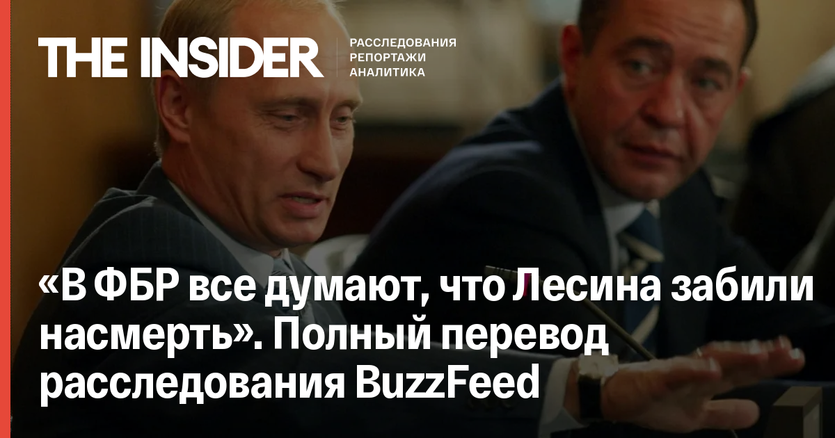 «Лесина забили насмерть, — сказал один из агентов ФБР. — Прошу вас, напишите об этом. Очень похоже, что этот факт пытаются скрыть по непонятным мне причинам».Он продолжал: «Могу сказать, что ни один человек в бюро не верит, что этот парень напился, упал и умер. Все думают, что его прикончили и что за этим стоят Путин или Кремль».Два других агента ФБР рассказали , что за номер в отеле, где умер Лесин, заплатило министерство юстиции; прежде их свидетельство не публиковали. Сотрудники министерства пригласили российского магната в Вашингтон, чтобы задать вопросы о внутренней кухне RT — финансируемой Кремлем телесети, которую основал Лесин.