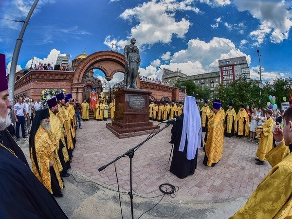 Памятник Николаю II и его сыну был открыт 16 июля у собора Александра Невского.