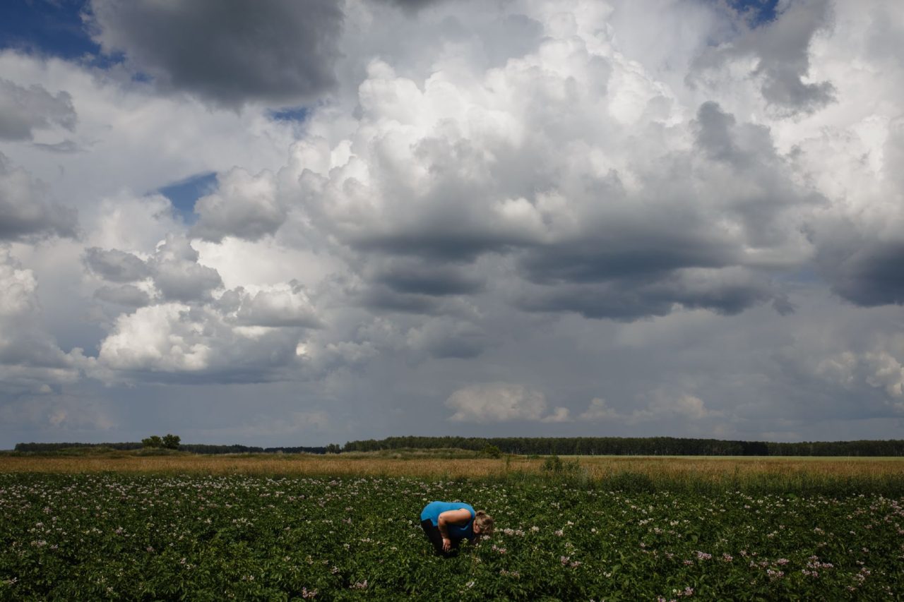 Светлана пропалывает картошкуФото: Евгения Жуланова/SCHSCHI для ТД Хозяйка угощает меня козьим молоком, показывает двух коз-кормилиц. На полноценную корову денег у семьи после переезда не осталось. Сейчас в хозяйстве пара свиней, пара кроликов, дюжина кур, цыплята и четыре дворняжки. Грядки. Шесть соток картошки.