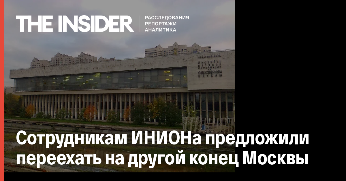 Руководство Федерального агентства научных организаций предложило сотрудникам Института научной информации по общественным науками, которых выселяют из здания на улице Кржижановского, переехать к коллегам во Всероссийский институт научной и технической информации. Как сообщает РБК, об этом рассказал директор ИНИОНа Илья Зайцев. ВИНИТИ находится на севере Москвы — возле метро «Сокол», на улице Усиевича.
