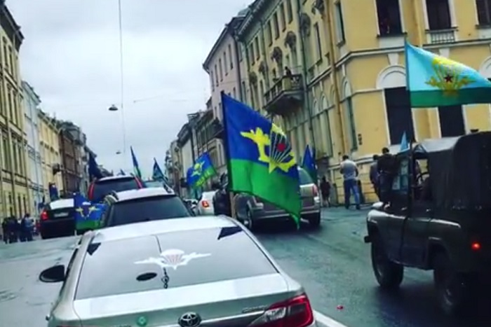 В День Воздушно-десантных войск по центру Петербурга проехала колонна с флагами. После полуденного выстрела пушки с Нарышкина бастиона Петропавловской крепости десантники прошли под звуки военного оркестра по Миллионной улице к Марсову полю. У «Вечного огня» они возложили цветы и венки в память о погибших.