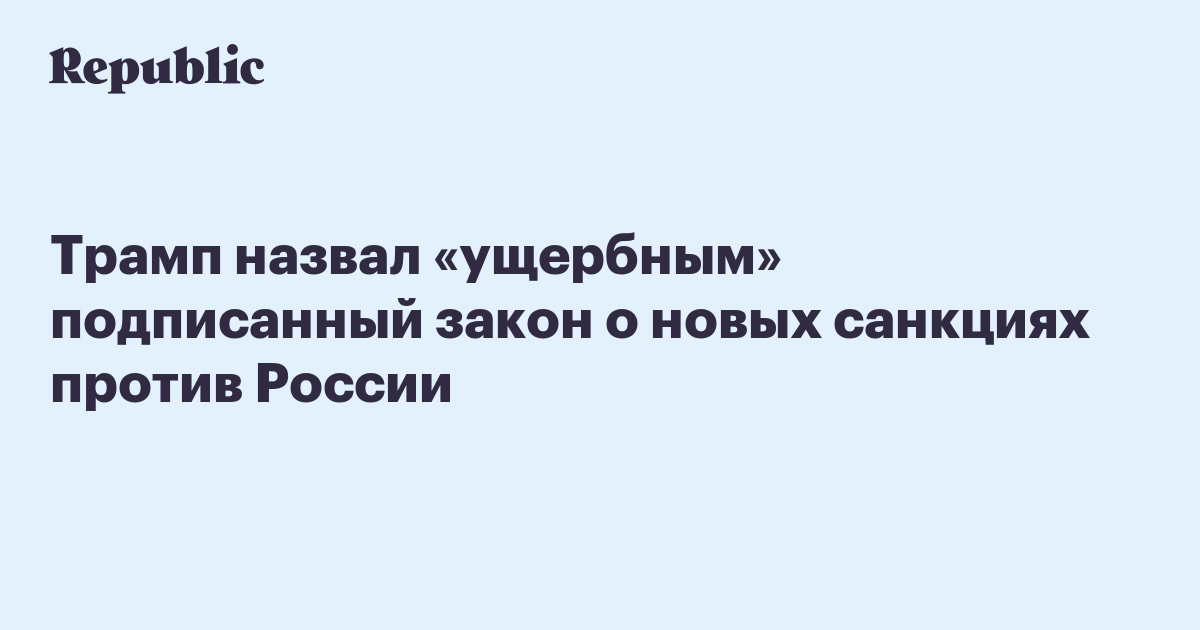 Трамп назвал «ущербным» подписанный закон о новых санкциях против России
