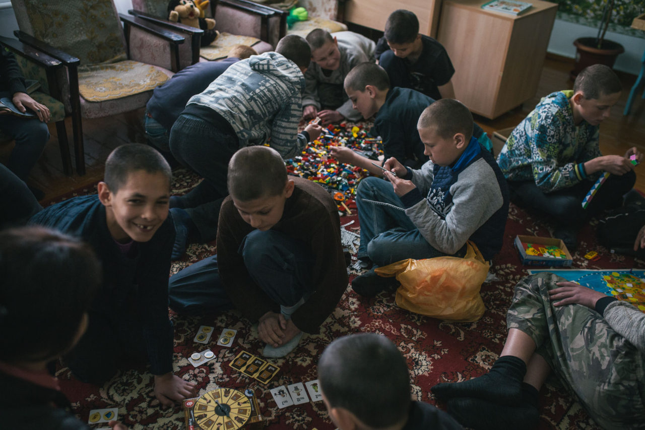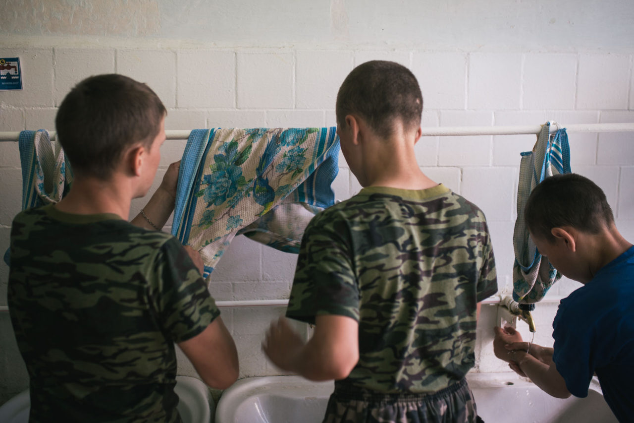 Хорошо и здесь, и в детдоме, свои плюсы и минусы. В детдоме как дома — ушел, вышел, общаешься нормально с пацанами. Здесь тоже хорошо, но за стеной. Общаюсь с пацанами местными, здесь всяким вещам учусь — на трубе играть, носки вязать, молоток правильно держать.