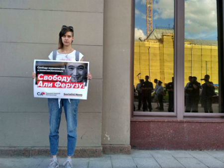 Одиночный пикет в поддержку Али Феруза. Фото с ФБ-страницы Профсоюза журналистов