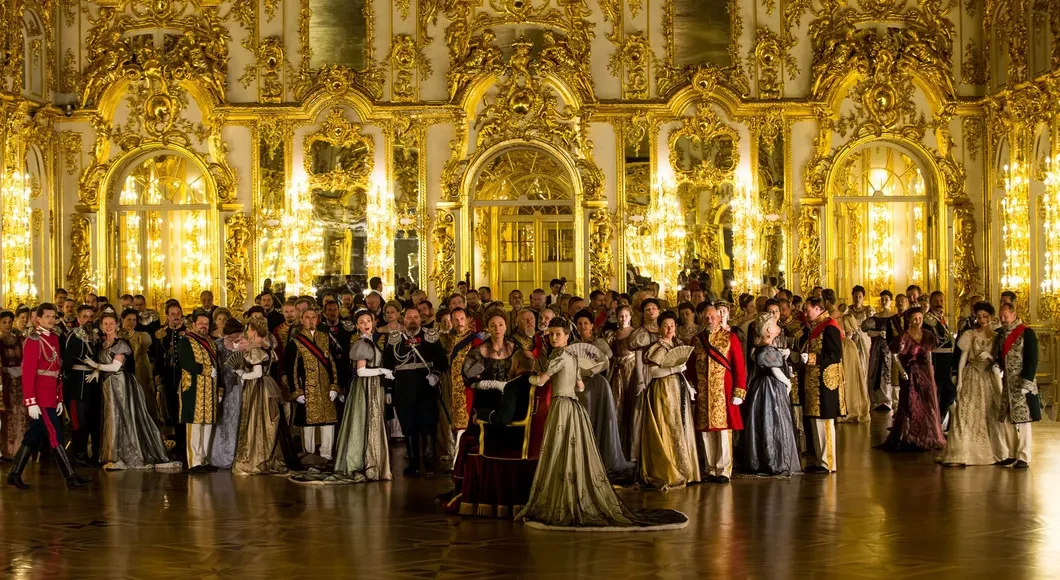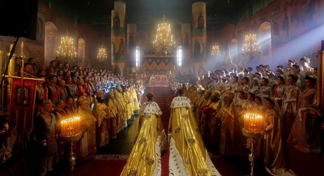 Ключевая сцена: коронация императора Николая II и императрицы Александры Федоровны. Специально для съемок была выстроена грандиозная декорация в натуральную величину, с предельной точностью воссоздающая внутреннее убранство Успенского собора Московского Кремля.