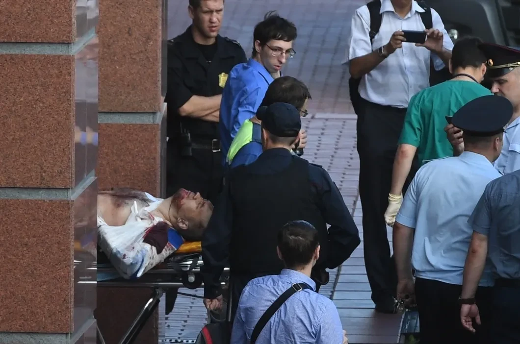 — Лифт с подсудимыми и конвоем стоял между этажами примерно десять минут, — рассказал «Новой» председатель коллегии адвокатов «Новый Арбат» Сергей Пешков, который в этот момент находился в суде по другому делу. — Я спустился на первый этаж попить кофе, проходя мимо сотрудников суда, услышал, что они между собой говорят, что на третьем этаже застрял лифт с подсудимыми и нужно позвать рабочих, чтобы исправить эту техническую неисправность. Я пошел дальше и вскоре услышал выстрелы, после чего всех начали выпроваживать из здания суда. Все происходило без паники. Моя коллега находилась в этот момент в процессе, когда услышала стрельбу уже в коридоре. Спускаясь с четвертого этажа, на третьем она увидела женщину в форме всю в крови. Сразу возникли предположения, что это была попытка побега подсудимых по делу «банды ГТА» — других резонансных дел в суде в настоящее время не рассматривается.