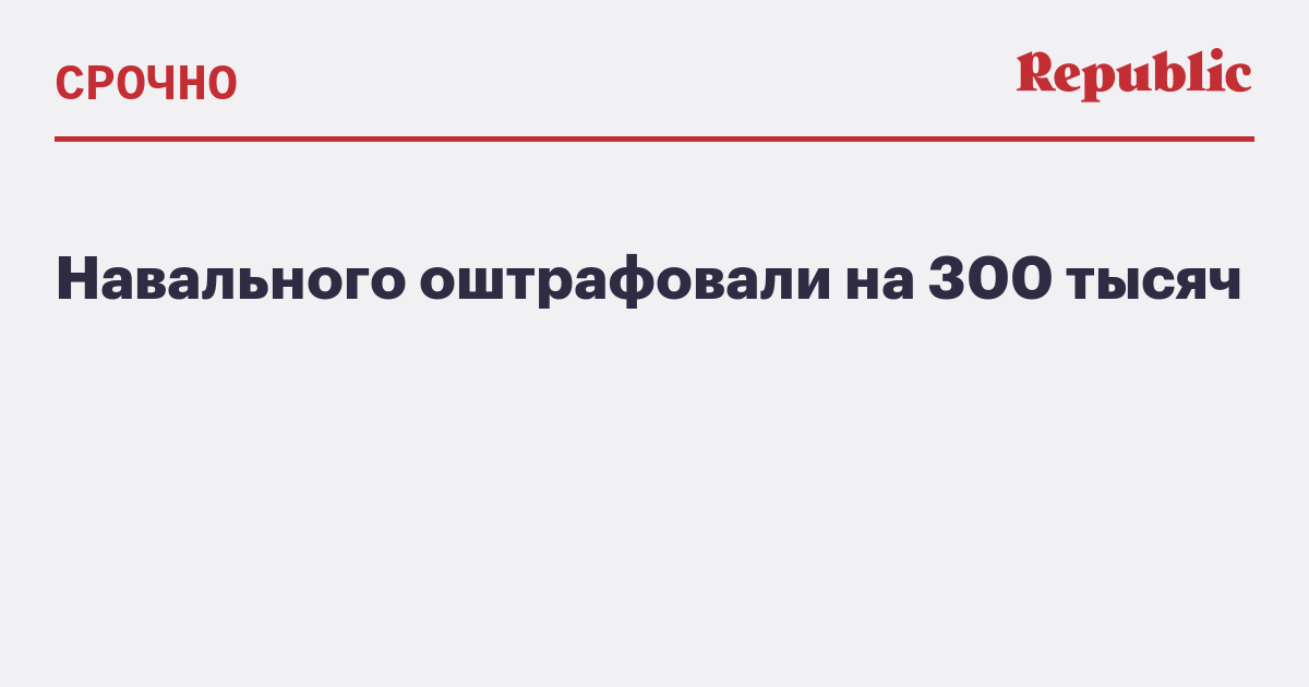 Симоновский суд Москвы оштрафовал политика Алексея Навального на 300 тысяч рублей. Об этом сообщает «Медиазона».