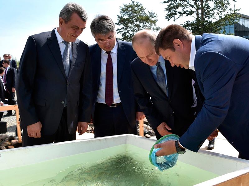 В. Путин перед началом церемонии выпуска в Байкал молоди омуля / kremlin.ru Этому виду рыб ничего не угрожает, просто глава государства посетил церемонию выпуска молоди омуля с целью поддержания биоразнообразия озера компанией «Рыбозавод Байкал» совместно с байкальским филиалом «Главрыбвод». Мальков рыбы выращивают в садках, а затем отпускают на волю.