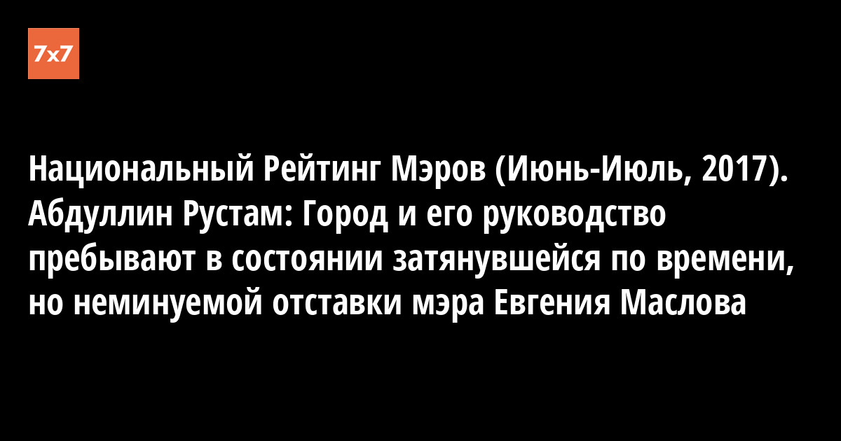 Национальный Рейтинг Мэров (Июнь-Июль, 2017). Абдуллин Рустам: Город и его руководство пребывают в состоянии затянувшейся по времени, но неминуемой отставки мэра Евгения Маслова