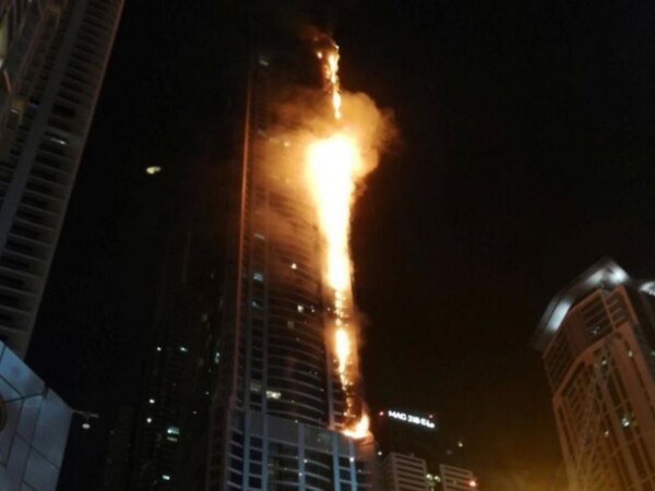 В ночь с 3 на 4 августа в Дубае горел 79-этажный небоскрёб Torch Tower («Башня Факел»). Возгорание произошло в 2 часа ночи на 9 этаже, затем огонь перешёл ещё на несколько уровней.