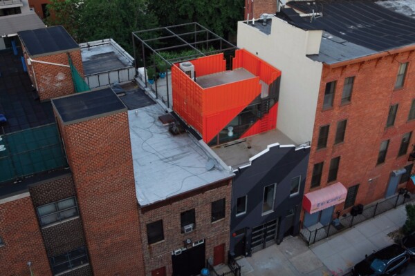 Американская студия Lot-Ek использовала ярко раскрашенные грузовые контейнеры для строительства пентхауса на крыше бруклинского дома 1930-х годов.