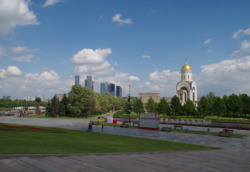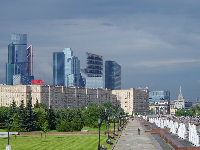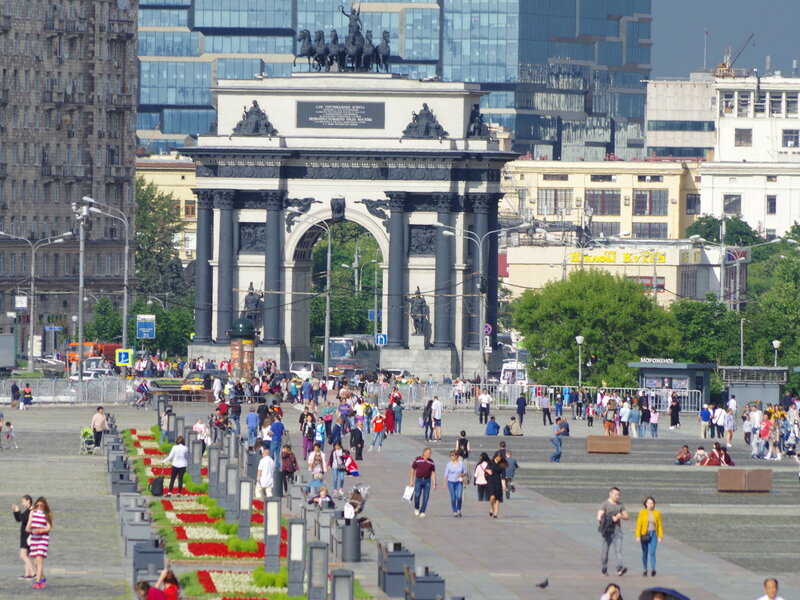 Итак в начале триумфальная арка, изначально она была возведена в другом месте в 1834 году есть победы русского народа в Отечественной войне 1812 года, затем в 1936 её снесли и только в 1965 восстановили на Кутузовском проспекте.