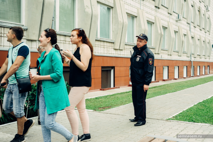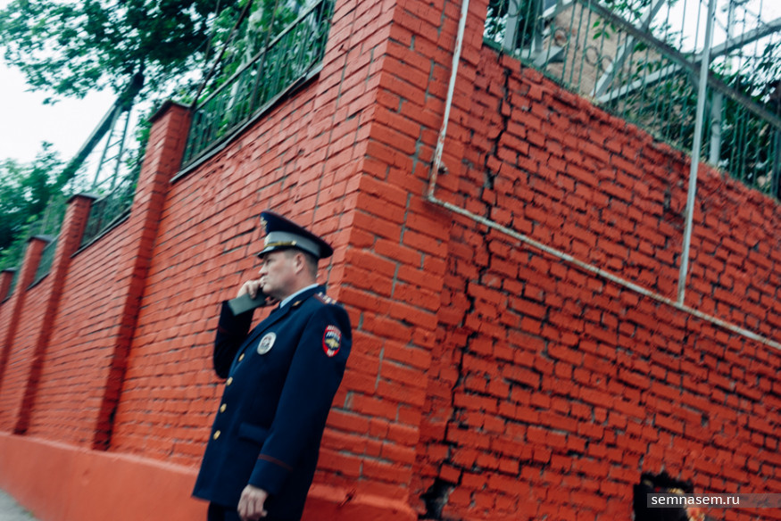 Сотрудник полиции, который представился Алексеем, стоял в оцеплении у стоматологической клиники на Карла Либкнехта. Он объяснял прохожим, что проход запрещен. Те, кто выходил из стоматологической клиники, были недовольны из-за того, что придется далеко обходить.