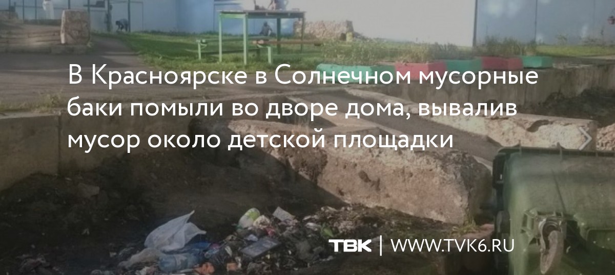 В Красноярске в Солнечном мусорные баки помыли во дворе дома, вывалив мусор около детской площадки