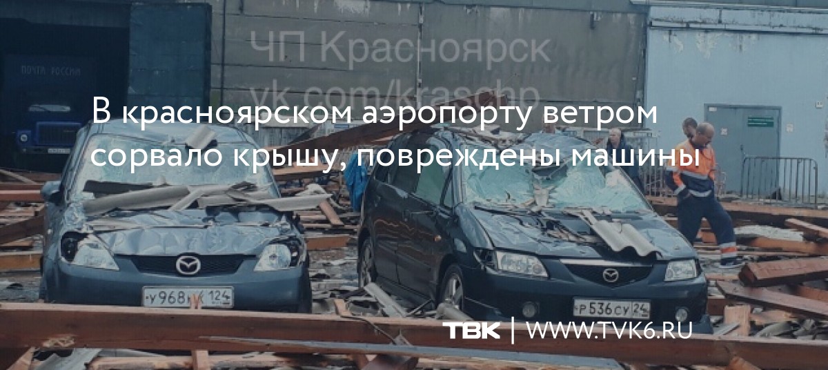 В красноярском аэропорту ветром сорвало крышу, повреждены машины