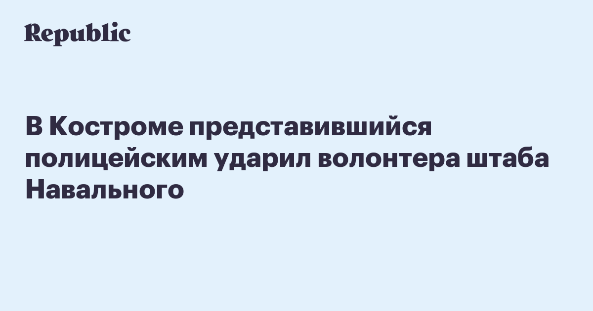 В Костроме мужчина в штатской одежде, представившийся полицейским, нанес удар головой в лицо волонтеру избирательного штаба Алексея Навального Александру Зыкову. Об этом пишет «7×7», на материал обратило внимание «ОВД-Инфо».