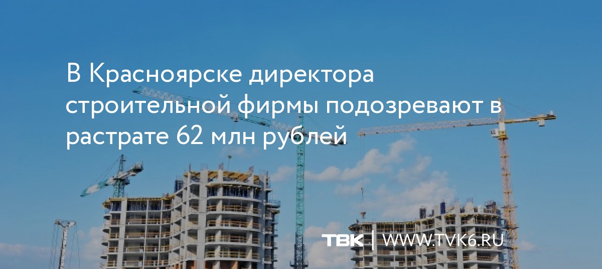 В Красноярске директора строительной фирмы подозревают в растрате 62 млн рублей