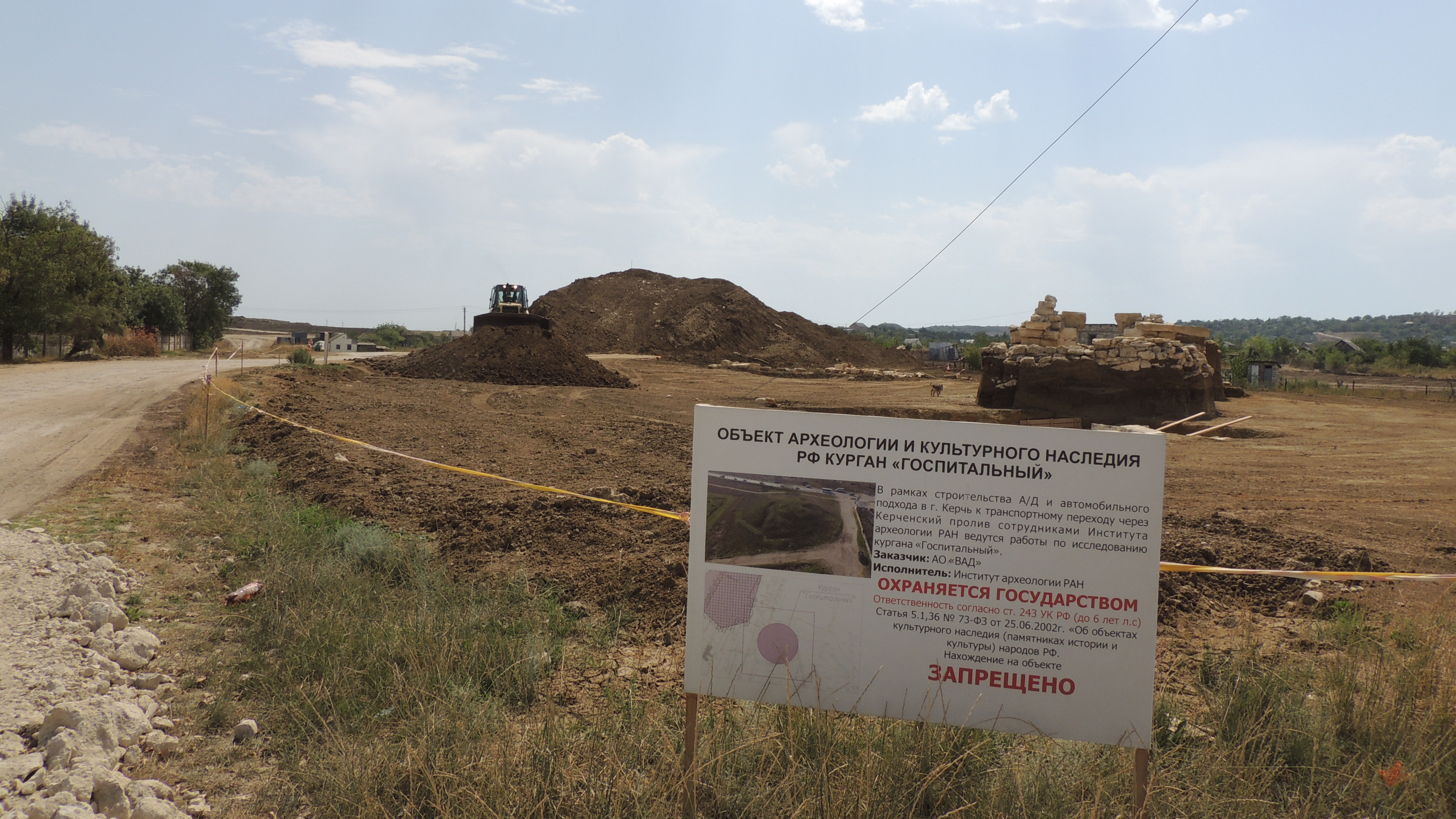 В Керчи сообщают о решении засыпать землей раскопанный ранее античный курган «Госпитальный», расположенный рядом с территорией, на которой проходит прокладка дороги, ведущей к строящемуся Крымскому мосту.