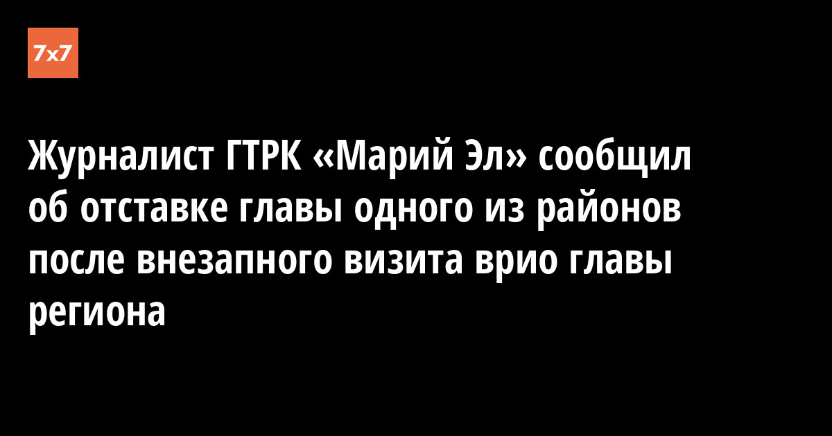 Журналист ГТРК «Марий Эл» сообщил об отставке главы одного из районов после внезапного визита врио главы региона