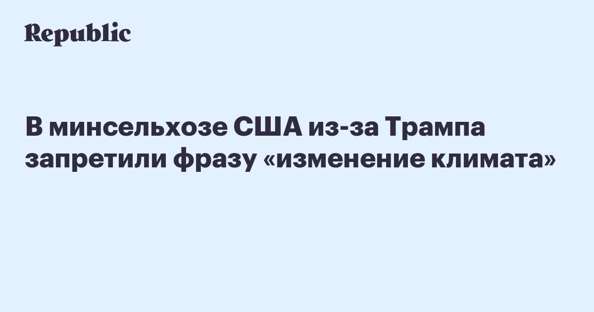 Руководство минсельхоза США предписало работникам Службы охраны природных ресурсов (структура ведомства) «избегать» в своей работе фразы «изменение климата». Это следует из служебной переписки сотрудников министерства, с которой ознакомилась Guardian.