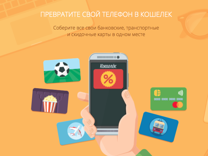 Приложение «Кошелёк» существует с 2013 года и сегодня полностью заменяет бумажник в кармане пользователя: оно агрегирует в телефоне банковские, транспортные, скидочные карты, купоны и подарочные сертификаты. Приложение установлено на более 4,5 миллиона смартфонов и вошло в топ-5 самых инновационных приложений для Android по версии Google. Среди партнеров сервиса – М.Видео, Спортмастер, SELA, Ostin, Mascotte, Рив Гош, Улыбка Радуги, О’КЕЙ и другие.