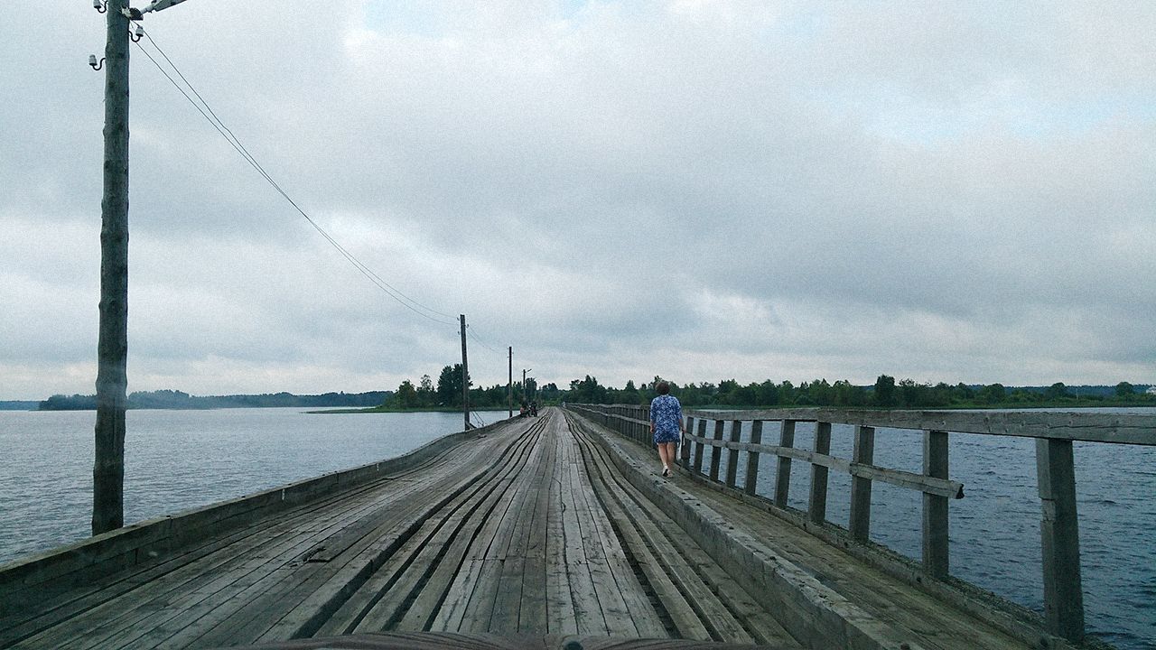 Дорога на остров Сладкий идет по скрипучему мосту — примерно километровому деревянному настилу на Новом озере на западе Вологодской области. В утреннем тумане мотоцикл с коляской, едущий на материк, останавливается, чтобы пропустить ползущее навстречу такси. «Куда же ты поехал? Не видел разве, что мы тут?» — ругается, кажется нетрезвый, мужчина средних лет в камуфляже; из коляски смотрит примерно так же выглядящий попутчик.