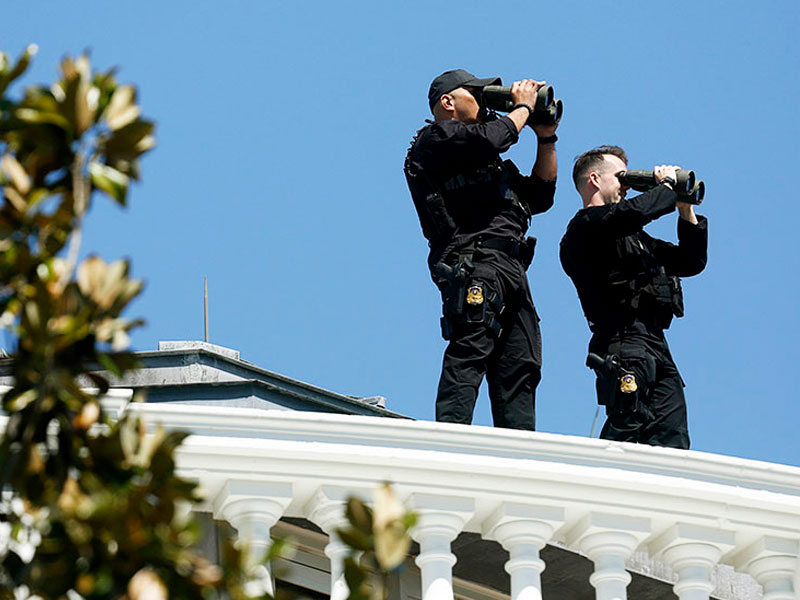 Охрана на крыше Белого дома Самолет Воздушно-космических сил России (ВКС РФ) совершил полет над Вашингтоном и его окрестностями, в том числе над зданиями Белого дома, Капитолия, Пентагона, штаб-квартиры ЦРУ.