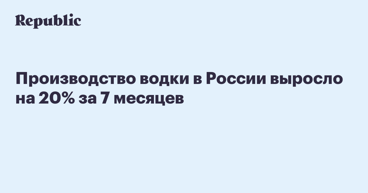 Производство водки в России выросло на 20,5% за 7 месяцев по сравнению с аналогичным периодом прошлого года. Об этом со ссылкой на Росстат пишет РБК.