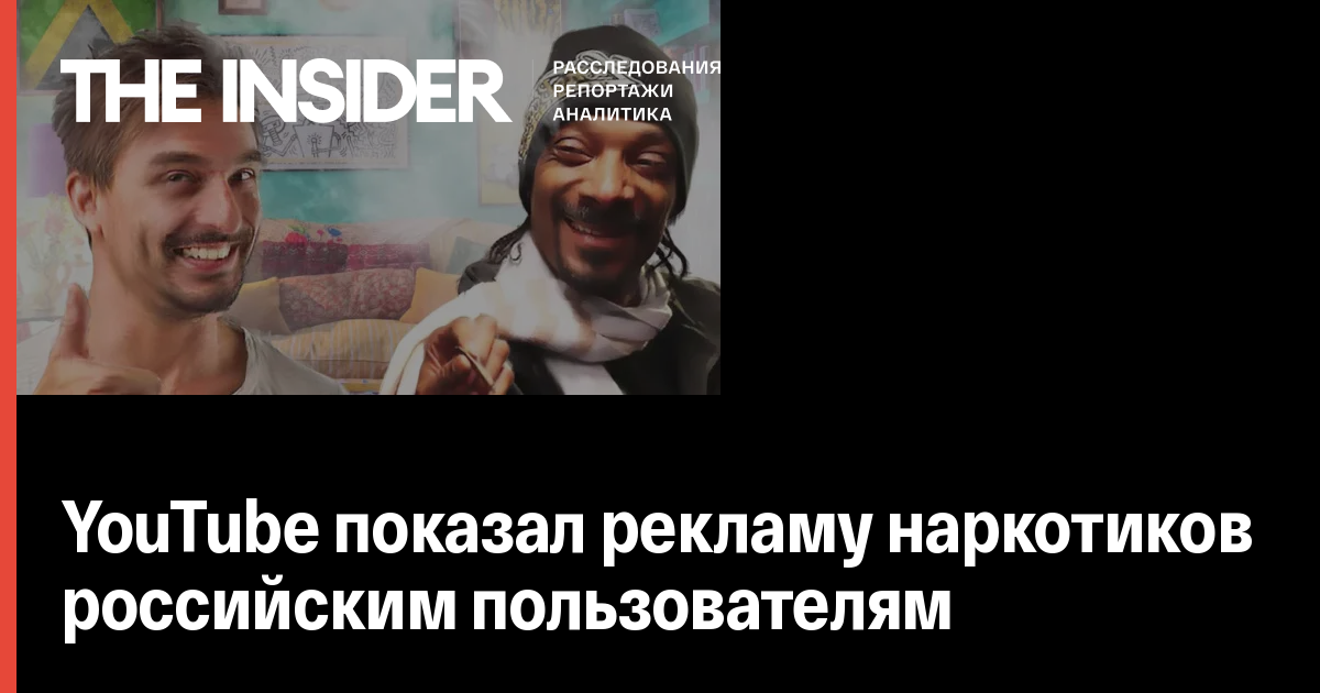 Пользователи YouTube из России увидели рекламу магазина по продаже наркотиков Hydra. Продвигающий их ролик отображался перед другими видео.