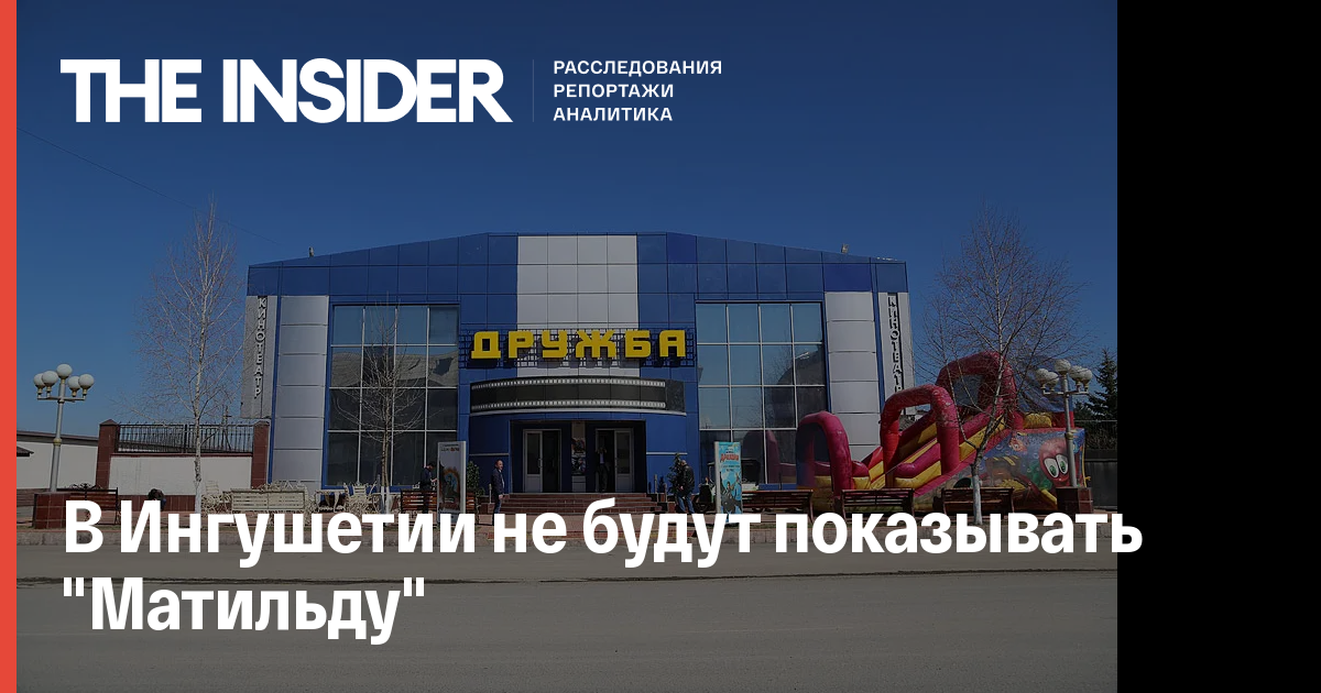 В Ингушетии откажутся от показа фильма Алексея Учителя «Матильда» из-за фрагментов, оскорбляющих чувства верующих. Как передает «Интерфакс», об этом сообщил представитель кинотеатра «Дружба». «Дружба» - единственный кинопрокатчик в республике.