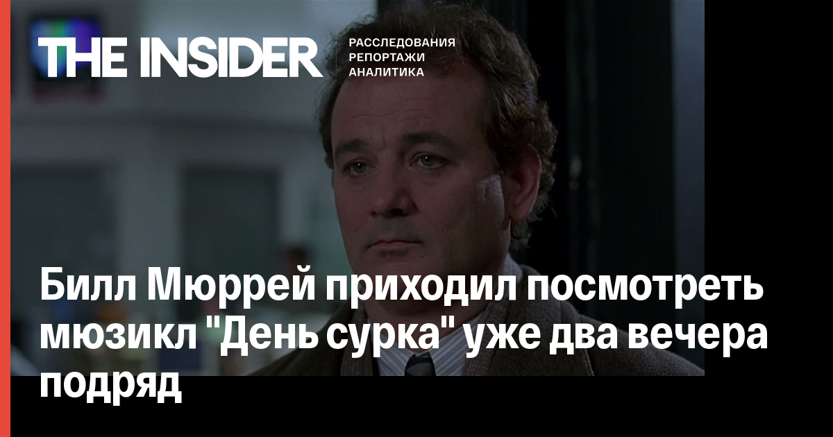 Голливудский актер Билл Мюррей в течение двух вечеров подряд смотрел мюзикл «День сурка» в Нью-Йорке. Об этом сообщает Entertainment Weekly.
