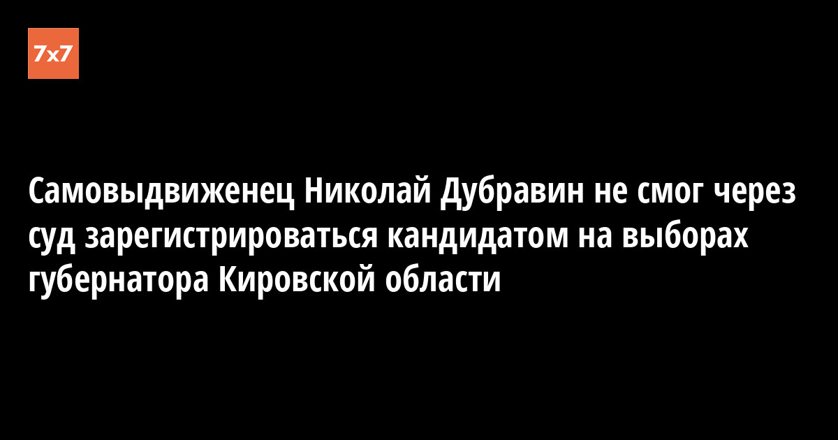 Кировский областной суд 10 августа поддержал позицию избирательной комиссии региона, которая отказала самовыдвиженцу Николаю Дубравину в регистрации кандидатом на пост губернатора. Об этом «7x7» сообщил сам Дубравин.