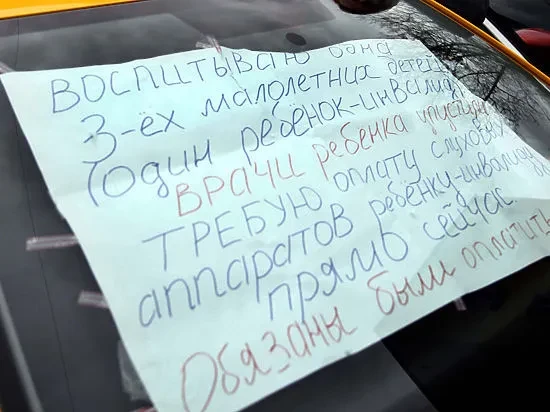 На окнах оранжево-черного «хёндая», взятого в поминутную аренду, были наклеены рукописные плакаты: «Прошу отвезти на прямой эфир к Путину», «Требую встречи с Путиным», «Дайте льготы ребенку-инвалиду».