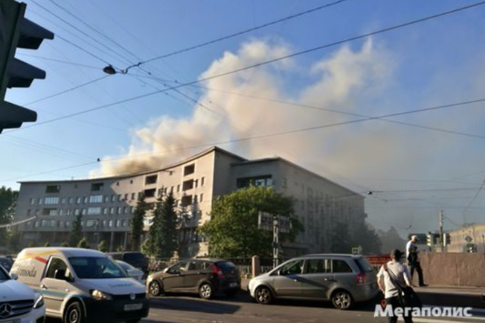 В доме Ленсовета на набережной реки Карповки вечером 14 августа произошел пожар, сообщают очевидцы на портале «Мегаполис». Судя по фотографиям, у здания загорелась кровля.