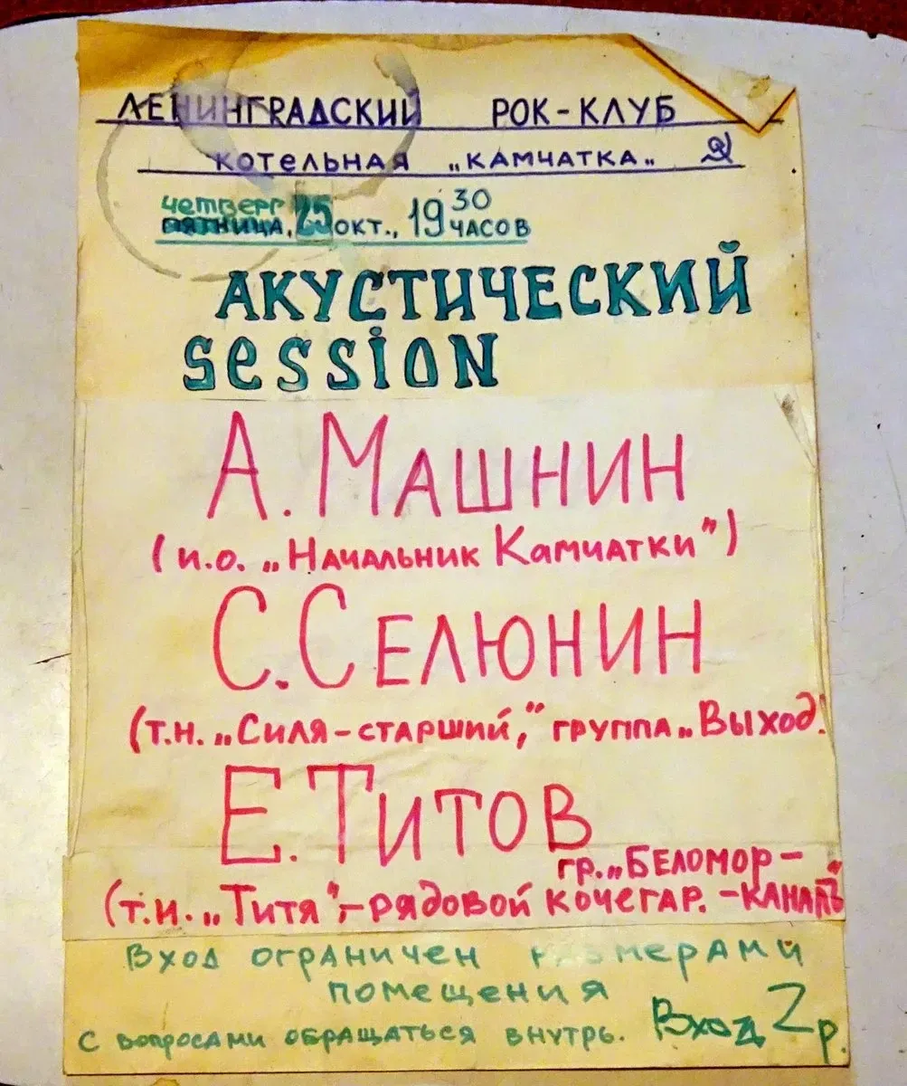 Сидим как-то у моей подруги из трестовской самодеятельности. Окно во двор открыто, 4-й этаж. Подошла она к окну, говорит: «Во, Цой с бачками. Видел?» Я тоже выглянул, действительно, Цой по двору шарахается. Говорю: «А что вообще происходит?» Она говорит: «Так он работает внизу, в кочегарке. Я и начальника их знаю, Толика. Давай познакомлю, споёшь ему что-нибудь заодно, там все музыканты работают». Думаю, ладно, почему нет. Так я и попал в «Камчатку» осенью 1987-го и в начале следующего сезона устроился туда на работу.