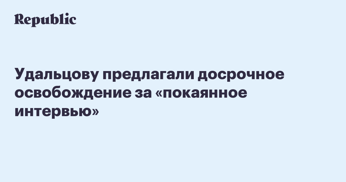Оппозиционеру Сергею Удальцову предлагали дать интервью с заранее подготовленными вопросами и ответами в обмен на условно-досрочное освобождение из колонии. Об этом Удальцов рассказал в эфире телеканала «Дождь».