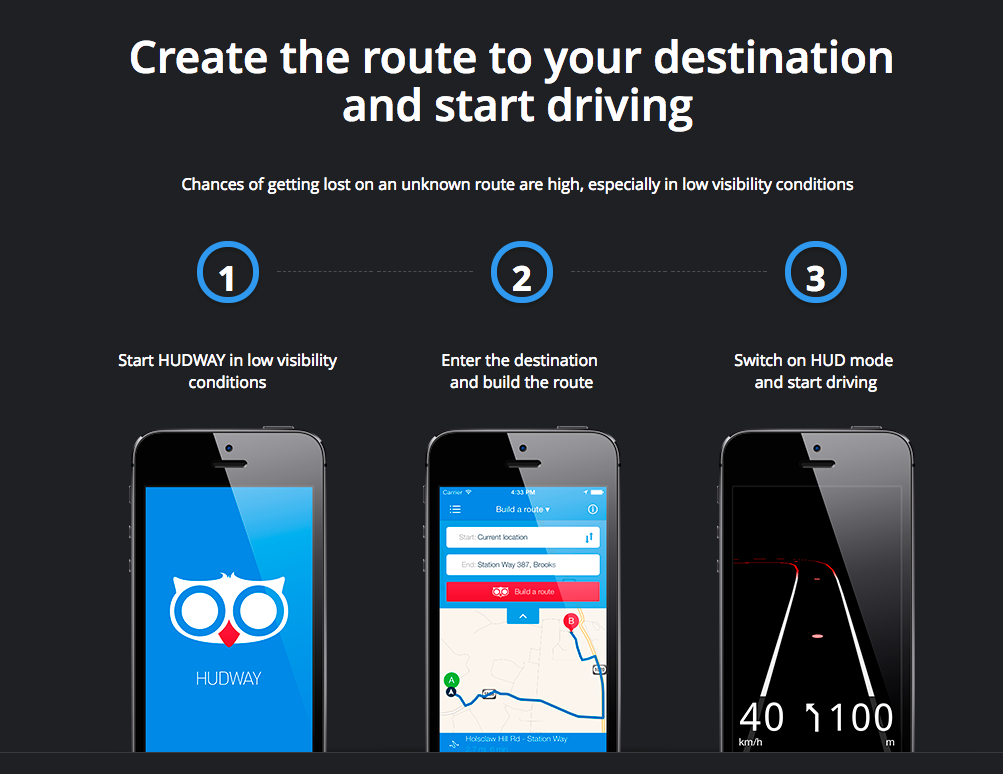 Другое интересное направление – индикаторы на лобовом стекле (ИЛС). Эта технология выплеснулась из военной отрасли в гражданскую транспортную сферу. Один из примеров – приложение для мобильных телефонов Hudway, призванное облегчить вождение автомобиля при низкой видимости.