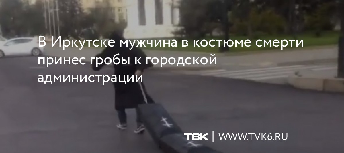 В Иркутске мужчина в костюме смерти принес гробы к городской администрации